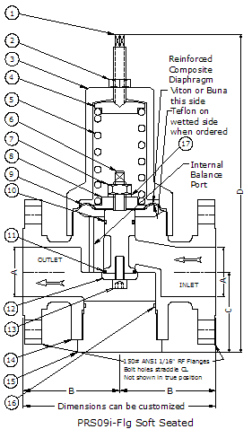 PRS-09i-FLG Stainless Steel 150# Flange In-Line Pressure Reducing Valve